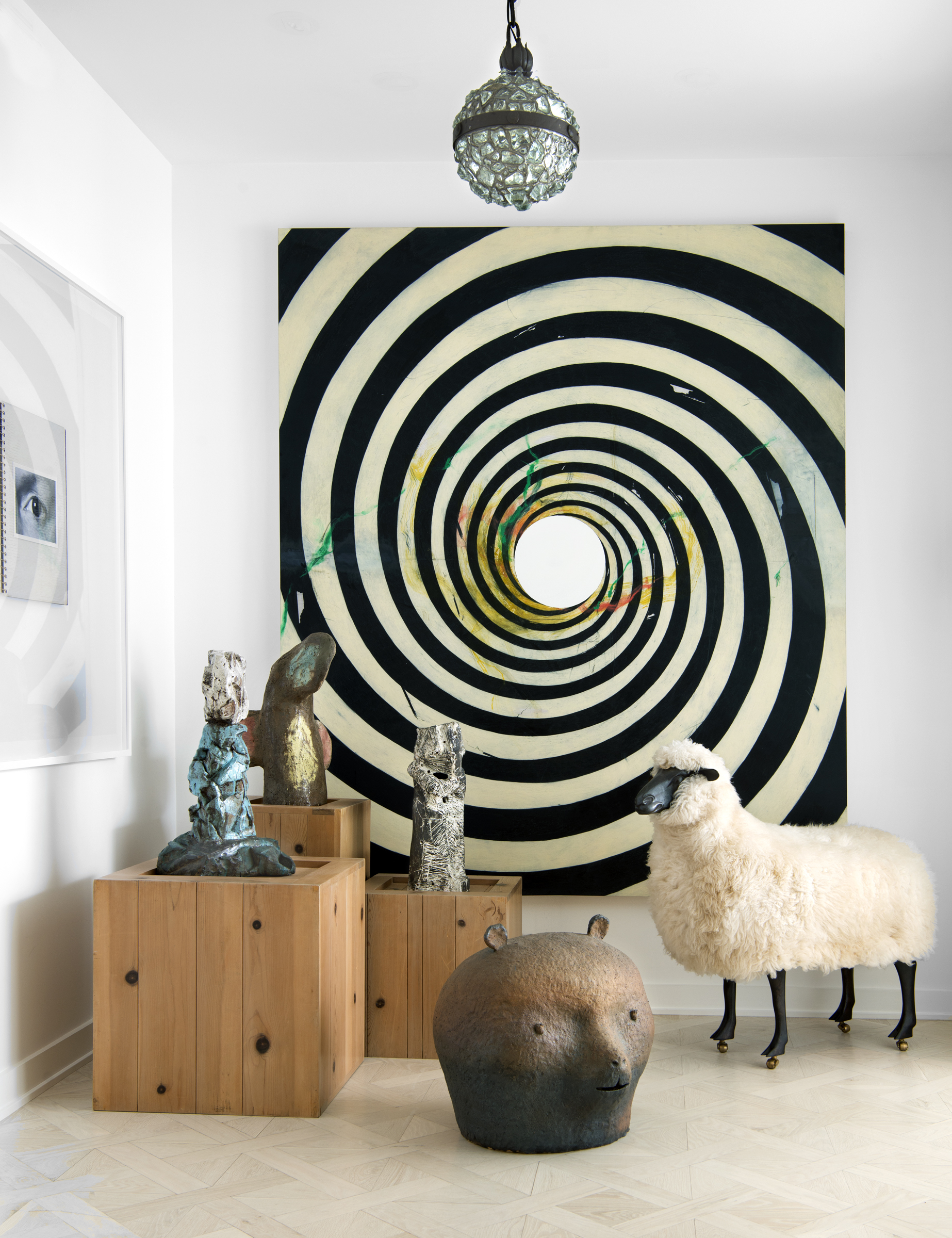 What was once a 1950's colonial home, this flat now boasts a mid-century modern appeal that showcases unique art from renown artists.